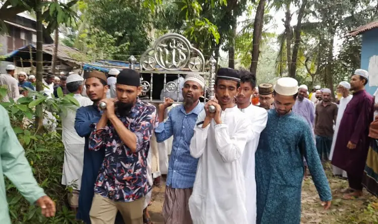 মালদ্বীপ থেকে জসিম উদ্দিনের (৪৫) লাশ অ্যাম্বুলেন্স যোগে বাড়িতে আসে মঙ্গলবার দিবাগত রাত ৮টার দিকে। রাতভর লাশের পাশে বসে ছিল ছেলে মেহনাব।