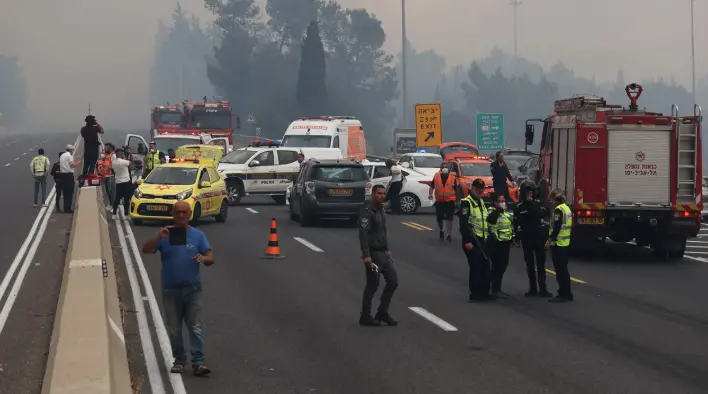 বুধবার (৩০ এপ্রিল) ইসরায়েলের ফায়ার অ্যান্ড রেসকিউ সার্ভিস জানায়, ওই সড়কে যেসব মানুষ গাড়িসহ আটকে পড়েছেন বা যারা আগুনের ঝুঁকিতে পড়েছেন তাদের উদ্ধারে অভিযান চালানো হচ্ছে। সেখানে একাধিক দাবানল জ্বলছে।