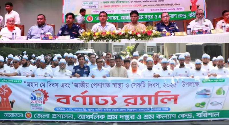 “শ্রমিক-মালিক এক হয়ে গড়বো এদেশ নতুন করে” এই শ্লোগান নিয়ে বরিশালে মহান মে দিবস এবং ‘জাতীয় পেশাগত স্বাস্থ্য ও সেফটি দিবস পালিত হয়েছে।