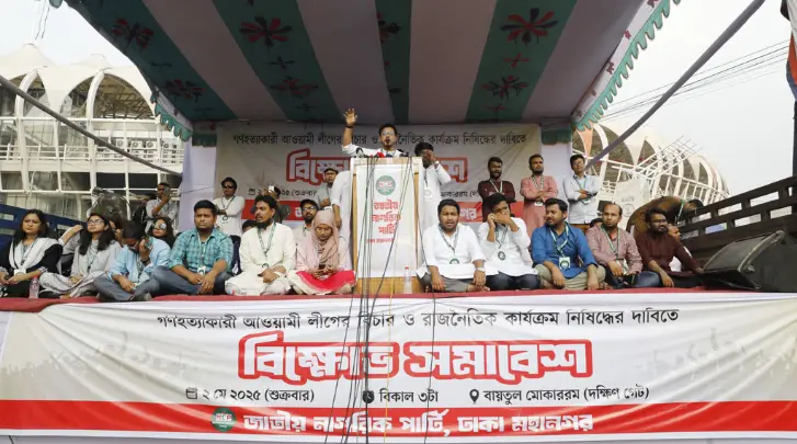 আওয়ামী লীগের রাজনীতি নিষিদ্ধ ও বিচার ছাড়া দেশে নির্বাচন হতে দেওয়া হবে না বলে জানিয়েছেন জাতীয় নাগরিক পার্টির (এনসিপি) নেতারা।