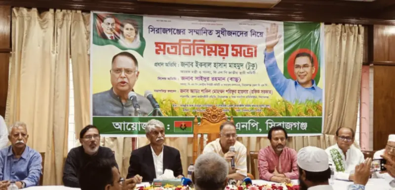 জেলা আইনজীবী সমিতির সভাপতি শাকিল মোহাম্মদ শরিফুর হায়দার (রফিক সরকার)র সভাপতিত্বে মতবিনিময় সভায় বিশেষ অতিথি হিসেবে বক্তব্য রাখেন সিরাজগঞ্জ জেলা বিএনপির সাধারণ সম্পাদক ছাইদুর রহমান বাচ্চু।