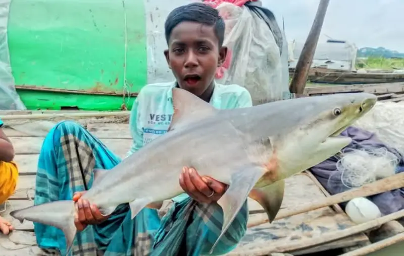 জেলের জালে ধরা মাছটির সম্পর্কের জানাতে চাইলে খুশিতে আনন্দিত হয়ে জেলে চুন্নু বলেন, রোববার সকালে সুগন্ধা নদীতে ইলিশ মাছ ধরার জন্য নদীতে জাল ফালাই। তার কিছুক্ষন পরেই জাল টানতে গেলে দেখি জালটি অনেক ওজন লাগছে। পরে জালটি টেনে দেখতে পাই বড় একটি ভিতরে। এর নদীর কিনারায় নৌকা থামিয়ে জাল থেকে মাছটি বের করে দেখি একটা হাঙ্গর মাছ।