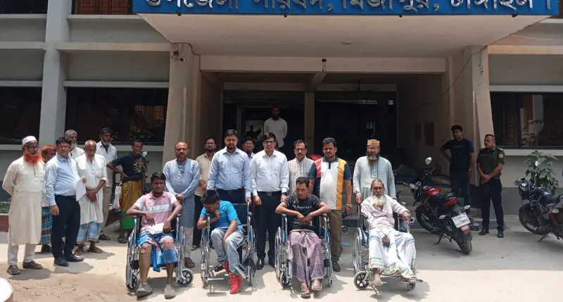 টাঙ্গাইলের মির্জাপুরে শারীরিক প্রতিবন্ধী ৩৫ জন নারী-পুরুষদের মধ্যে হুইল চেয়ার বিতরণ করা হয়েছে। নতুন এসব হুইল চেয়ার শারীরিক চলাফেরার সহায়ক হিসেবে প্রতিবন্ধীদের জীবনে নতুন গতি আনবে বলে মনে করছেন আয়োজকেরা।
