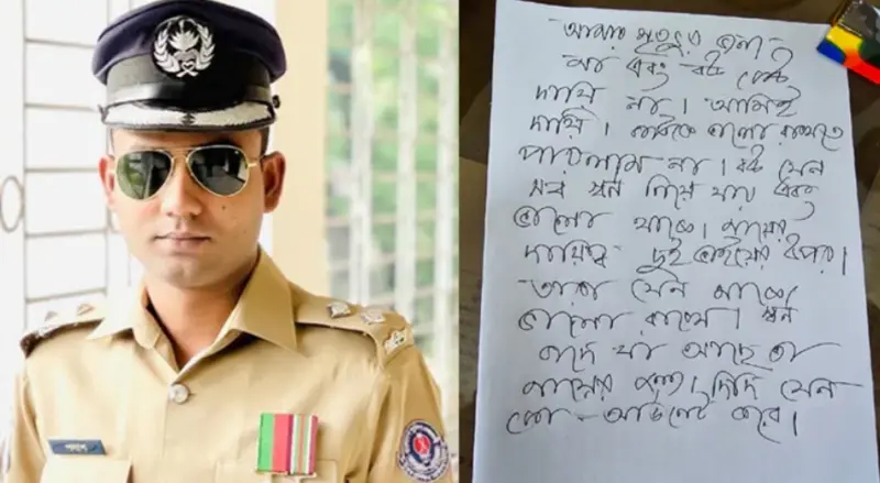 চিরকুটে লেখা ছিল: “আমার মৃত্যুর জন্য মা এবং বউ কেউ দায়ী না। আমিই দায়ী। কাউকে ভালো রাখতে পারলাম না। বউ যেন সব স্বর্ণ নিয়ে যায় এবং ভালো থাকে। মায়ের দায়িত্ব দুই ভাইয়ের ওপর। তারা যেন মাকে ভালো রাখে। স্বর্ণ বাদে যা আছে তা মায়ের জন্য। দিদি যেন কো-অর্ডিনেট করে।”
