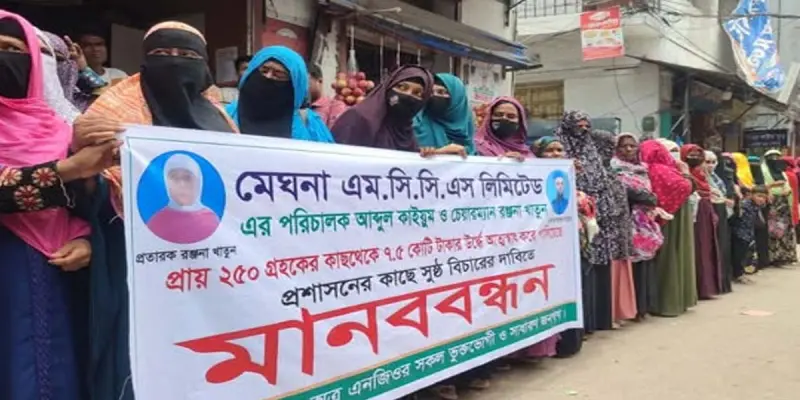 এ সময় প্রতারণার শিকার গ্রাহকরা অভিযোগ করে বলেন, ২০১১ সালে পাবনা শহরের দিলালপুরে মেঘনা এমসিসিএস লিমিটেড নামে একটি এনজিও চালু করেন প্রতারক আব্দুল কাইয়ুম। প্রতিষ্ঠানটির নিজে ব্যবস্থাপনা পরিচালক ও তার স্ত্রী রঞ্জনা খাতুন চেয়ারম্যান হিসেবে কাজ করেন। তারা বেশকিছু নারী মাঠকর্মী নিয়োগ করে গ্রামের অসহায় নারীদের টাকা দ্বিগুন হওয়ার প্রলোভন দিয়ে সঞ্চয় ও ডিপিএস এর নামে টাকা জমা নিতে শুরু করেন।