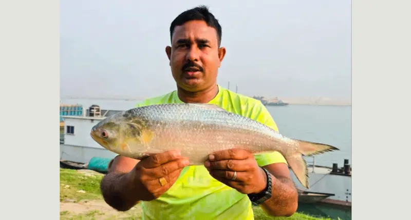 রাজবাড়ীর গোয়ালন্দে পদ্মা নদীতে জেলের জালে ধরা পড়েছে বিশাল আকৃতির একটি ইলিশ মাছ। মাছটির ওজন ১ কেজি ৯৬০ গ্রাম, যা বিক্রি হয়েছে সাড়ে ৮ হাজার টাকায়।