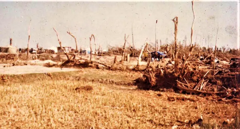 সেদিন বিকালে প্রলয়ঙ্করী ঘুর্ণিঝড়ে মুহূর্তের মধ্যে জেলার ৫টি উপজেলার ৪০টি গ্রাম লন্ডভন্ড হয়ে যায়। অনেকের ঘরের চালা উড়ে যাওয়ায় গোলার ধান পর্যন্ত ঝড়ে অদৃশ্য হতে দেখা যায়। অনেক ঘরবাড়ি, গাছপালা, গবাধিপশু নিশ্চিহ্ন হয়ে যায়। অনেক নারী-পুরুষের পরনের কাপড় ছিন্নভিন্ন হয়ে যায়। অনেককে সম্পূর্ণ বস্ত্রহীন ক্ষতবিক্ষত দেহে বিভিন্ন কৃষি জমি, জঙ্গল, পুকুর-ডোবা থেকে উদ্ধার করা হয়। বৈদ্যুতিক খুঁটি ও নলকূপের উপরের অংশ দালানের ছাদ পর্যন্ত উঠে যায়।