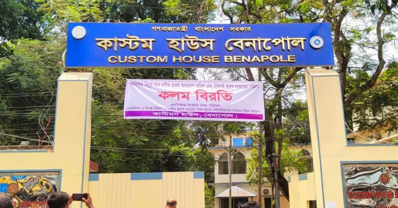 সকাল ১০টা থেকে কাস্টমস হাউজে কোন কাজ হচ্ছে না। অধিকাংশ টেবিল খালি দেখা গেছে। কিছু কর্মকর্তা উপস্থিত থাকলেও কোন কাজ করছেন না। তবে বেনাপোল-পেট্রাপোল বন্দর দিয়ে আমদানি-রপ্তানি স্বাভাবিক রয়েছে। কলম বিরতির কারণে নতুন করে কোন পণ্যের আইজিএম ইস্যু করা হচ্ছে না। আগের ইস্যু করা আইজিএমের পণ্য আমদানি-রপ্তানি হচ্ছে। বেলা ১টা পর্যন্ত কলম বিরতি চলবে। তার পর কাজ শুরু হবে কাস্টমস হাউজে।