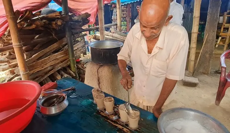 মাটির চুলায় ৩ ঘণ্টা ধরে তৈরি হয় এই মালাই চা, যেখানে ব্যবহার করা হয় ৪০ কেজি খাঁটি গরুর দুধ, আর শুক্রবার লাগে ৮০ কেজি। পুরো কাপজুড়ে থাকে দুধ আর সামান্য লিকার ও চিনি।