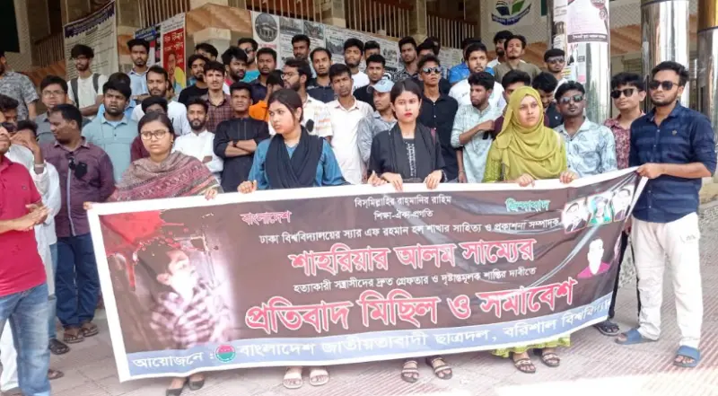 ঢাকা বিশ্ববিদ্যালয়ের (ঢাবি) ছাত্রদল নেতা শাহরিয়ার আলম সাগর হত্যার প্রতিবাদে বরিশাল বিশ্ববিদ্যালয়ে (ববি) প্রতিবাদ মিছিল ও বিক্ষোভ সমাবেশ করেছে ছাত্রদল।