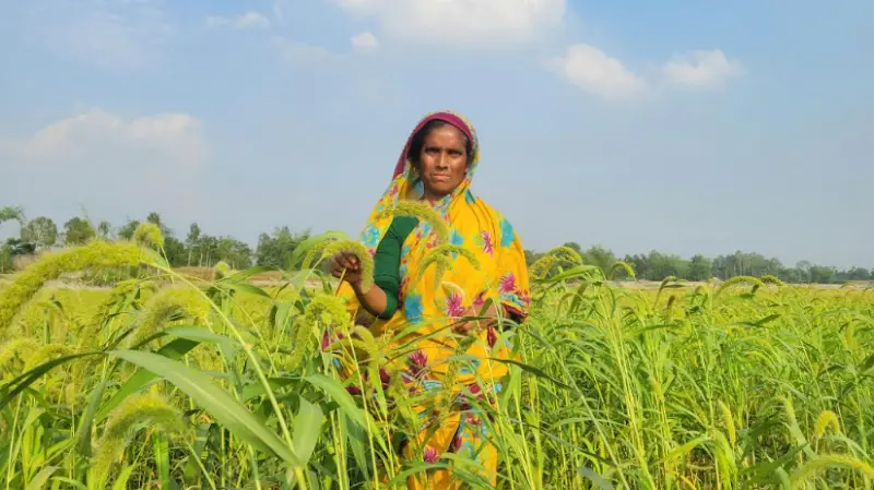 পশ্চিমফুলমতি এলাকার বারোমাসিয়া নদীর পাড় শহিদুল ইসলাম ও গোরকমন্ডল এলাকার ধরলা পাড়ে গিয়ে দেখা গেছে, প্রখর রোদে কৃষাণী সারাতুন বেগম কাউন ক্ষেতের পরিচর্যা করছেন।