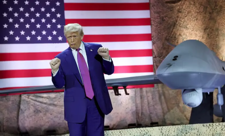 কাতারের আল-উদেইদ সামরিক ঘাঁটিতে পৌঁছেছেন যুক্তরাষ্ট্রের প্রেসিডেন্ট ডোনাল্ড ট্রাম্প। সেখানে ভাষণ দেয়ার আগে মঞ্চে দাঁড়িয়ে তিনি ‘গড ব্লেস দ্য ইউএসএ’ গানে দুলতে থাকেন এবং হালকা নাচের ভঙ্গি করেন। ট্রাম্পের পিছনে সারিবদ্ধভাবে দাঁড়িয়ে ছিলেন মার্কিন সেনাবাহিনীর সদস্যরা, যারা এই মুহূর্তটি উপভোগ করছিলেন।
