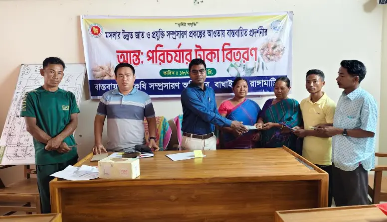 বাঘাইছড়িতে উন্নতজাত ও প্রযুক্তি সম্প্রসারণ প্রকল্পের (১ম সংশোধিত) আওতায় চুইঝাল ও আদা চাষীদের নগদ অর্থ বিতরণ।