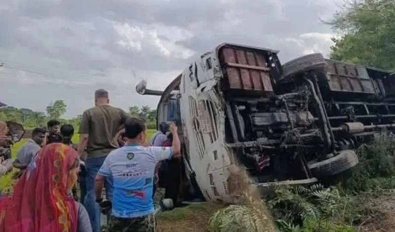 এতে বাসটি নিয়ন্ত্রণ হারিয়ে উল্টে রাস্তার পাশের খাদে পড়ে। এসময় বাসের ৩৫ যাত্রী সকলেই কমবেশি আহত হন, তবে কেউ মারাত্মক আহত হননি। আহতদের মধ্যে বেশ কয়েকজনকে সাতক্ষীরা বিজিবি ক্যাম্পে নিয়ে প্রাথমিক চিকিৎসা দেওয়া হয়েছে।