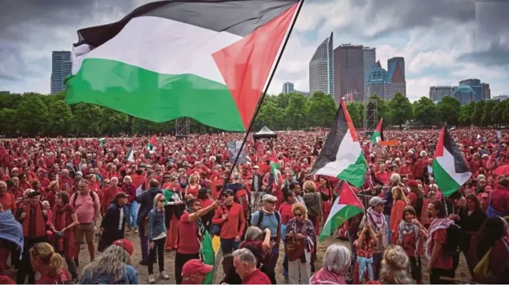 ফিলিস্তিনের গাজায় ইসরায়েলের যুদ্ধের বিরুদ্ধে ডাচ সরকারের কঠোর অবস্থানের দাবিতে নেদারল্যান্ডসে বিক্ষোভ মিছিল করেছে ১ লাখ মানুষ।