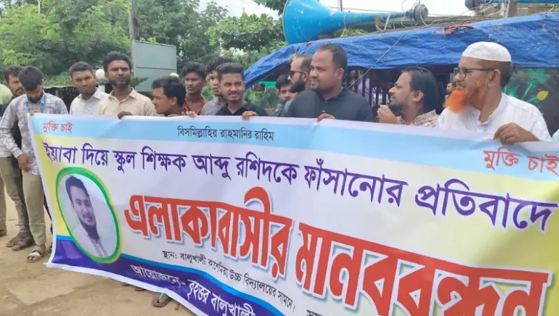 বুধবার (২১ মে) সকালে বালুখালী স্টেশনে আয়োজিত এক মানববন্ধনে রশিদকে মুক্তি দিতে প্রশাসনের প্রতি আহবান জানানো হয়। গত ১৯ মে বিকেলে রশিদকে তুলে নিয়ে যাওয়ার পর রাতে ১০ হাজার ইয়াবা সহ আটক দেখিয়ে উখিয়া থানায় মামলা করে মাদক দ্রব্য নিয়ন্ত্রণ অধিদপ্তর (ডিএনসি)।