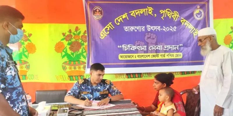 মোংলায় "তারুন্যের উৎসব-২০২৫” শীর্ষক মেডিক্যাল ক্যাম্পেইন পরিচালনা করে অসহায়, দুঃস্থ ও শিশুদের বিনামূল্যে চিকিৎসা সেবা এবং জনসচেতনতা মূলক কার্যক্রম পরিচালনা করেছে কোস্ট গার্ড।