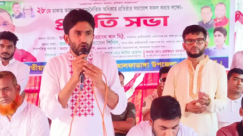 বৃহস্পতিবার (২২ মে) বিকালে জেলার আলফাডাঙ্গা উপজেলা সদর বাজারের পুরাতন সোনালি ব্যাংকের সামনে এক সভায় প্রধান অতিথির বক্তব্যে এ কথা বলেন তিনি।