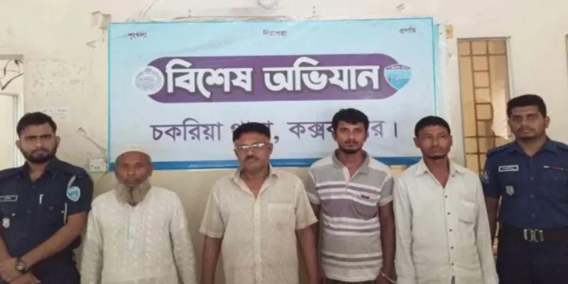 আটককৃত আসামিরা হলেন, কক্সবাজারের চকরিয়া উপজেলার বরইতলি ইউনিয়নের ৯নং ওয়ার্ড গোবিন্দপুরের সর্দার পাড়া এলাকার মৃত সোলাইমানের পুত্র আবদু শুক্কুর (৪৮) ও একই এলাকার মৃত আমির হোসনের পুত্র মোহাম্মদ নুরুল আমিন( ৩৫), চকরিয়া উপজেলার ফাঁসিয়াখালী ইউনিয়নের ১নং ওয়ার্ড হাজিয়ান এলাকার মৃত সোলতান আহম্মদের পুত্র নুর মোহাম্মদ (৬০) এবং চকরিয়া উপজেলার পূর্ব বড় ভেওলা ইউনিয়নের ৬নং ওয়ার্ড আনিছ পাড়া এলাকার মৃত গোলাম কাদেরের পুত্র আবদুল মোনাফ(৫৭)।