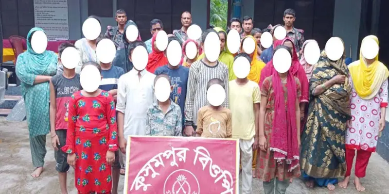 আটককৃতরা হলেন- নড়াইল জেলার বেষ্টপুর গ্রামের মোশারফ হোসেনের মেয়ে রিয়া খাতুন (২২), রফিকুল ইসলামের ছেলে শাওন মল্লিক (১১), মৃত লাল মিয়ার মেয়ে ছকিনা খাতুন (৫৫), মিরাজুল ইসলামের ছেলে আহম্মেদ (১১ মাস), মোহাম্মদ (৫) ও রাব্বি গাজি (৮), মালেক হোসেনের ছেলে মনি (২৮), ইরাই গাজীর ছেলে শাহিন (১৩) ও কোরবান আলী (১৫), কেরামত শেখের মেয়ে শরিফা বেগম (৩২), আপন মল্লিকের ছেলে ইয়ামিন (৩), ইব্রাহীম মল্লিক (৪), গফফার শিকদারের মেয়ে নিকলা বেগম (৪৩), শরীফ হোসেনের ছেলে আপন মল্লিক (৫১), খুলনা জেলার কামার খোলা গ্রামের হাকিম শিকদারের ছেলে শাহজাহান শিকদার (২১), হাকিম শিকদারের মেয়ে মরিয়ম খাতুন (২০), আসমা খাতুন (১১), জামিলা শিকদার (৩), ছেলে সামির উল্লাহ (৬), শাহ পরান (৪) ও শাহিন আলম (১৭), স্ত্রী খুরশিদা বেগম (৪০), শামসুর রাহমানের ছেলে হাকিম শিকদার (৫৮), রফিকুল ইসলামের ছেলে রাকিব শেখ (৭), সিদ্দিকের মেয়ে পলি ইয়াসমিন (৩৪), কিশোরগঞ্জ জেলার সাতিরচর গ্রামের মুর্শিদ মিয়ার মেয়ে নুরনাহার (২২), ঝিনাইদহ জেলার দামদরপুর গ্রামের ইউনুস শেখের ছেলে আশরাফুল শেখ (১১), গিয়াস উদ্দিনের মেয়ে আবু গুরায়রা (১৩), আবুল কালামের মেয়ে নার্গিস বেগম (২৮), কেরামত শেখের মেয়ে কাকুলি বেগম (৩৯) এবং আজহারীর মেয়ে রিজিয়া বেগম (৫৮)।