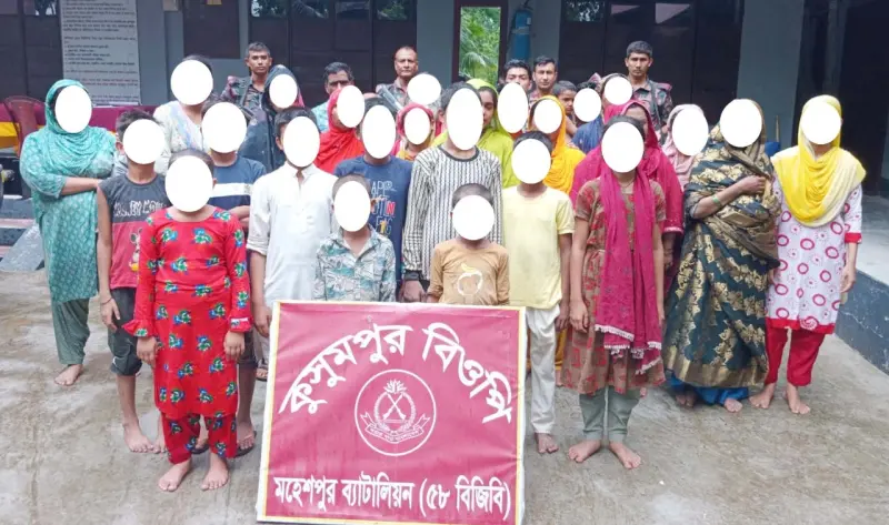 আটককৃতরা হলেন- নড়াইল জেলার বেষ্টপুর গ্রামের মোশারফ হোসেনের মেয়ে রিয়া খাতুন (২২), রফিকুল ইসলামের ছেলে শাওন মল্লিক (১১), মৃত লাল মিয়ার মেয়ে ছকিনা খাতুন (৫৫), মিরাজুল ইসলামের ছেলে আহম্মেদ (১১ মাস), মোহাম্মদ (৫) ও রাব্বি গাজি (৮), মালেক হোসেনের ছেলে মনি (২৮), ইরাই গাজীর ছেলে শাহিন (১৩) ও কোরবান আলী (১৫), কেরামত শেখের মেয়ে শরিফা বেগম (৩২), আপন মল্লিকের ছেলে ইয়ামিন (৩), ইব্রাহীম মল্লিক (৪), গফফার শিকদারের মেয়ে নিকলা বেগম (৪৩), শরীফ হোসেনের ছেলে আপন মল্লিক (৫১), খুলনা জেলার কামার খোলা গ্রামের হাকিম শিকদারের ছেলে শাহজাহান শিকদার (২১), হাকিম শিকদারের মেয়ে মরিয়ম খাতুন (২০), আসমা খাতুন (১১), জামিলা শিকদার (৩), ছেলে সামির উল্লাহ (৬), শাহ পরান (৪) ও শাহিন আলম (১৭), স্ত্রী খুরশিদা বেগম (৪০), শামসুর রাহমানের ছেলে হাকিম শিকদার (৫৮), রফিকুল ইসলামের ছেলে রাকিব শেখ (৭), সিদ্দিকের মেয়ে পলি ইয়াসমিন (৩৪), কিশোরগঞ্জ জেলার সাতিরচর গ্রামের মুর্শিদ মিয়ার মেয়ে নুরনাহার (২২), ঝিনাইদহ জেলার দামদরপুর গ্রামের ইউনুস শেখের ছেলে আশরাফুল শেখ (১১), গিয়াস উদ্দিনের মেয়ে আবু গুরায়রা (১৩), আবুল কালামের মেয়ে নার্গিস বেগম (২৮), কেরামত শেখের মেয়ে কাকুলি বেগম (৩৯) এবং আজহারীর মেয়ে রিজিয়া বেগম (৫৮)।
