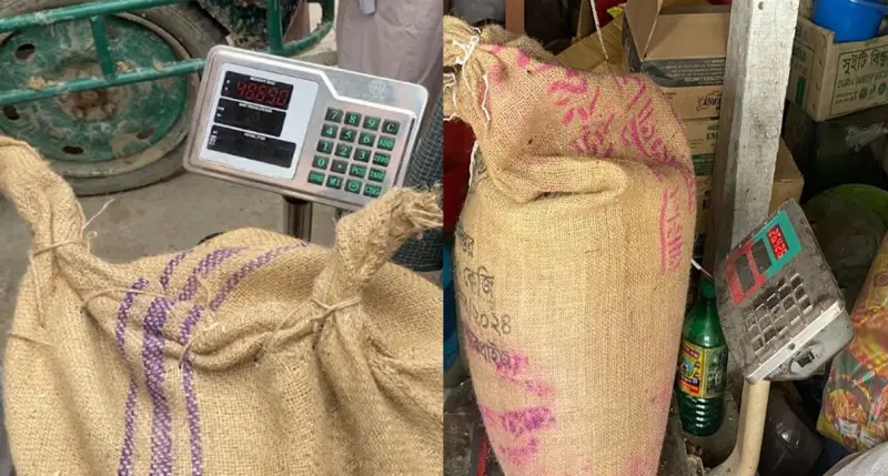 জহিরুল বলেন, ৮০ কেজির চালের দুইটি বস্তা দিয়েছে। তাতে একটি ৩০ কেজির বস্তায় ২৬.৪ কেজি এবং ৫০ কেজির বস্তায় ৪৮.৬ কেজি। বস্তার ওজন বাদ দিলে চাল আরো অন্তত আধা কেজি কম হবে।