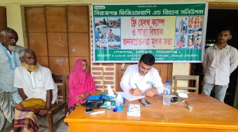 সিরাজগঞ্জের বেলকুচিতে 'সিরাজগঞ্জ ফিজিওথেরাপি এন্ড রিহ্যাব সলিউশন্স' এর উদ্যোগে ফ্রি হেলথ ক্যাম্প ও স্বাস্থ্য বিষয়ক জনসচেতনতামূলক সভা অনুষ্ঠিত হয়েছে।