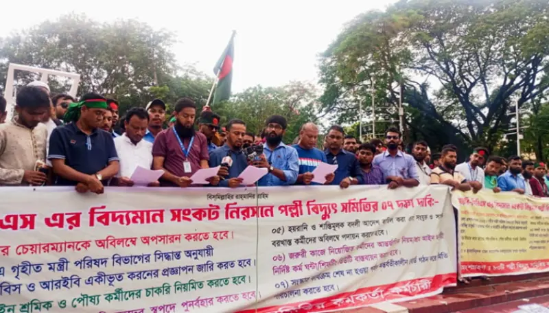 অভিন্ন চাকরিবিধি বাস্তবায়ন, হয়রানি বন্ধ, মামলা প্রত্যাহারসহ ৭ দফা দাবিতে সারাদেশের ৮০টি পল্লী বিদ্যুৎ সমিতির কর্মকর্তা-কর্মচারীরা গত ২১ মে থেকে কেন্দ্রীয় শহীদ মিনারে অনির্দিষ্টকালের অবস্থান কর্মসূচি চালিয়ে যাচ্ছেন।