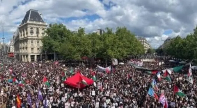 অবরুদ্ধ গাজায় গণহত্যা বন্ধের দাবিতে ও চলমান মানবিক বিপর্যয়ের বিরুদ্ধে ফ্রান্সের রাজধানী প্যারিসের রিপাবলিক চত্বরে এক বিক্ষোভ সমাবেশে প্রতিবাদ জানিয়েছে হাজার হাজার মানুষ। এতে ফিলিস্তিনি পতাকা, ব্যানার ও প্ল্যাকার্ড হাতে তরুণ-তরুণীসহ বিভিন্ন বয়সীরা সমবেত হন।