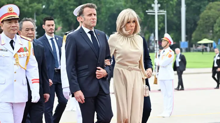 এর আগে, গতকাল সোমবার রাষ্ট্রীয় সফরে ভিয়েতনাম পৌঁছান ফরাসি প্রেসিডেন্ট। এ সময়, উড়োজাহাজের দরজা খোলার সাথে সাথে লাল ড্রেস পরিহিত কেউ ম্যাকরনের গালে চপেটাঘাত করেন। ক্যামেরা দেখে কিছুটা অপ্রস্তুত হয়ে ফের বিমানের ভেতরে ঢুকে যান তিনি। পরে যখন দুজন বেরিয়ে এলেন, তখন বুঝতে বাকি রইলো না লাল ড্রেসওয়ালা আর কেউ নন, প্রেসিডেন্টের স্ত্রী।