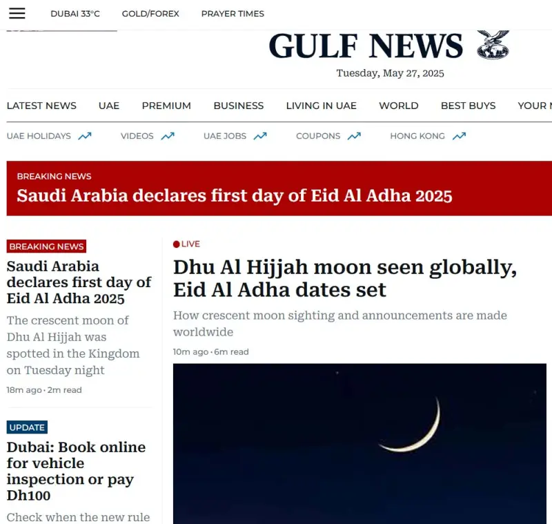 দুই পবিত্র মসজিদভিত্তিক ওয়েবসাইট ইনসাইড দ্য হারামাইন জানিয়েছে, চাঁদ দেখা যাওয়ায় কাল বুধবার (২৮ মে) থেকে শুরু হবে জিলহজ মাস। ৯ জিলহজ (৫ জুন) আল্লাহর মেহমানরা আরাফাতের ময়দানে আর ৬ জুন উদযাপিত হবে ঈদুল আজহা।