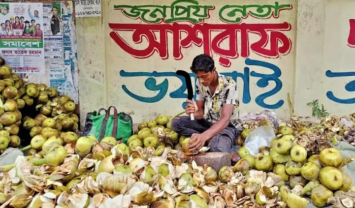 গাছে থাকা দুই টাকার তালের শাঁস টাঙ্গাইল শহরের খুচরা বাজারে বিক্রি হচ্ছে ২৫-৩০ টাকায়। শহরের নারী-পুরুষ কিংবা শিশু-বৃদ্ধ ক্রেতারা শাঁস কিনতে ভিড় করছেন। পাড়া-মহল্লা ও সড়কের মোড়ে মোড়ে বসেছে অস্থায়ী দোকান। তীব্র গরমে প্রাণ জুড়ানো পুষ্টিগুণ সমৃদ্ধ ফল হিসেবে তালের শাঁস বা কোষ কিনছেন ক্রেতারা।