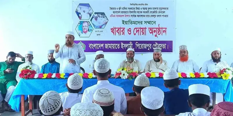 এদিকে পিরোজপুর সদর উপজেলায় তাফহীমুল কুরআন আলিয়া মাদ্রাসায় খাবার পরিবেশন ও দোয়া অনুষ্ঠানে জামায়াতের পৌর আমীর ইসহাক আলী খানের সভাপতিত্বে প্রধান অতিথি হিসেবে উপস্থিত ছিলেন জামায়াতের জেলা মিডিয়া সম্পাদক অধ্যাপক সোহরাব হোসাইন জুয়েল। পৌর সেক্রেটারি আল আমিন শেখের পরিচালনায় এতে আরো উপস্থিত ছিলেন জেলা শুরা সদস্য মাওলানা আব্দুল হালিমসহ আরও অনেকে।