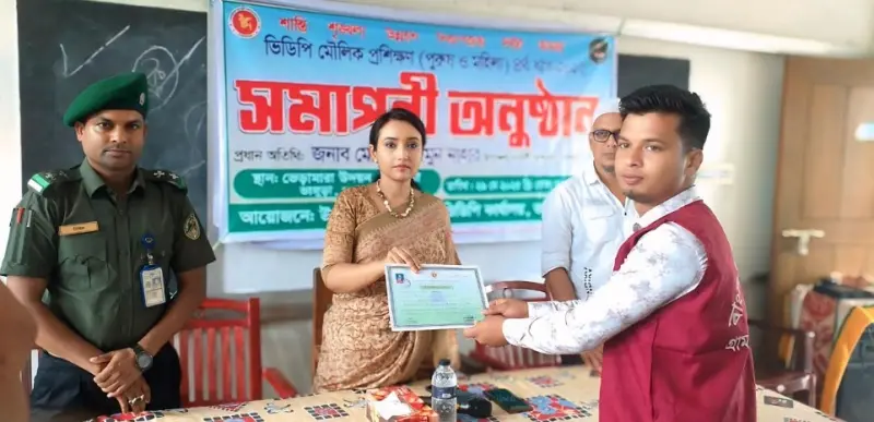 প্রশিক্ষণে অংশগ্রহণকারী ৩৭ জন পুরুষ এবং ২৭ জন মহিলা আনসার-ভিডিপি প্রশিক্ষণার্থীদের মাঝে প্রধান অতিথি হিসেবে সনদপত্র ও ভাতা প্রদান করেন উপজেলা নির্বাহী অফিসার মোছা. নাজমুন নাহার।