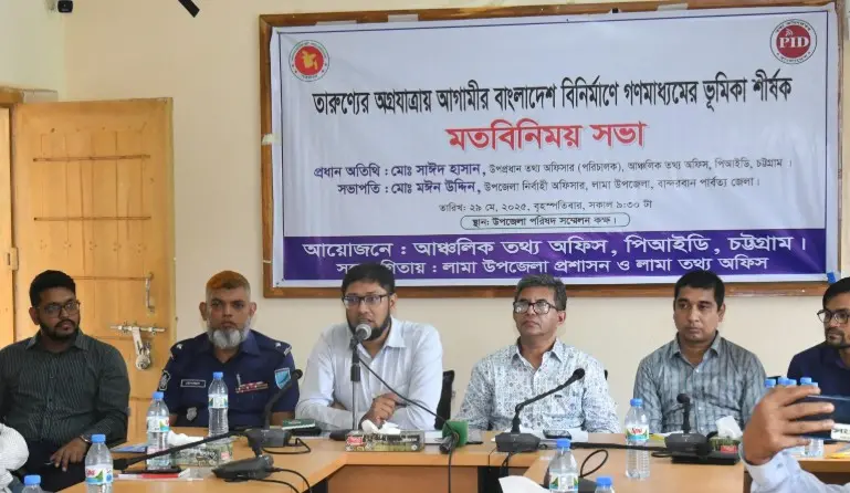 বৃহস্পতিবার (২৯ মে) সকালে বান্দরবান জেলার লামা উপজেলা পরিষদের সম্মেলনকক্ষে অনুষ্ঠিত মতবিনিময় সভায় প্রধান অতিথি হিসেবে উপস্থিত ছিলেন আঞ্চলিক তথ্য অফিস, চট্টগ্রামের উপপ্রধান তথ্য অফিসার মোঃ সাঈদ হাসান। অনুষ্ঠানে সভাপতিত্ব করেন লামা উপজেলা নির্বাহী অফিসার মঈন উদ্দিন। অনুষ্ঠানে মূল প্রবন্ধ উপস্থাপন করেন আঞ্চলিক তথ্য অফিস চট্টগ্রাম পিআইডির সিনিয়র তথ্য অফিসার বাপ্পী চক্রবর্তী।