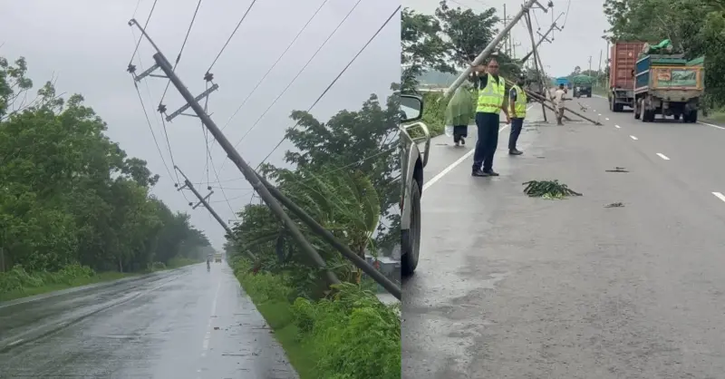 বঙ্গোপসাগরে সৃষ্ট ঘূর্ণিঝড়ের প্রভাবে দাউদকান্দিতে রাতভর প্রবল দমকা হাওয়ায় বিদ্যুতের খুঁটি হেলে পড়েছে। এর ফলে ঢাকা-চট্টগ্রাম মহাসড়কে যানবাহন চলাচলে বিঘ্ন ঘটছে এবং যেকোনো সময় বড় ধরনের দুর্ঘটনার আশঙ্কা তৈরি হয়েছে।