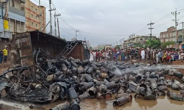 ব্রাহ্মণবাড়িয়ায় খানাখন্দে ভরা মহাসড়কে গ্যাস সিলিন্ডার বোঝাই ট্রাক উল্টে একের পর এক সিলিন্ডার বিস্ফোরণের ঘটনা ঘটেছে। তবে এতে কোনো হতাহতের ঘটনা ঘটেনি।