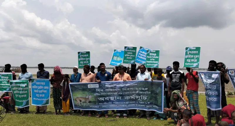 প্লাাস্টিক পলিথিন দূষণে আক্রান্ত সুন্দরবন। প্লাস্টিক পলিথিন দূষণের ফলে সুন্দরবনের বাস্তুতন্ত্র হুমকিতে। গবেষণায় সুন্দরবনের মাছে মাইক্রো প্লাস্টিকের অস্তিত্ব পাওয়া গেছে। এতে জনস্বাস্থ্য ঝুঁকির মধ্যে পড়েছে। সুন্দরবনের জলজপ্রাণী ও বাস্তুতন্ত্র রক্ষায় প্লাস্টিক পলিথিন বিষয়ে জিরো টলারেন্স নীতিতে চলতে হবে। শুধুমাত্র সুন্দরবনে সিঙ্গেল ইউজ প্লাস্টিক নিষিদ্ধ করলে হবে না, সমগ্র উপকূলজুড়ে এবং পর্যায়ক্রমে সারাদেশে সিঙ্গেল ইউজ প্লাস্টিক নিষিদ্ধ করতে হবে। আর নয়, প্লাস্টিক পলিথিন দূষণ বন্ধ করার এখনই সময়।