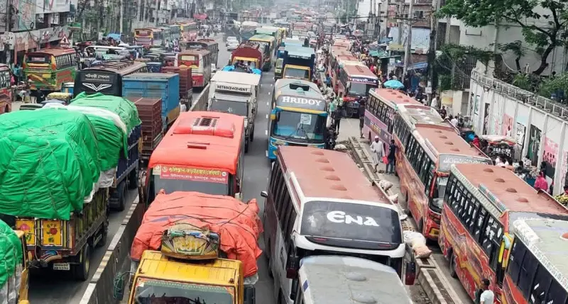 পরিবহন নেতারা জানিয়েছেন, গাজীপুরের পোশাক কারখানাগুলো আজ ছুটি হওয়ায় যাত্রীদের চাপ বেড়ে গেছে।