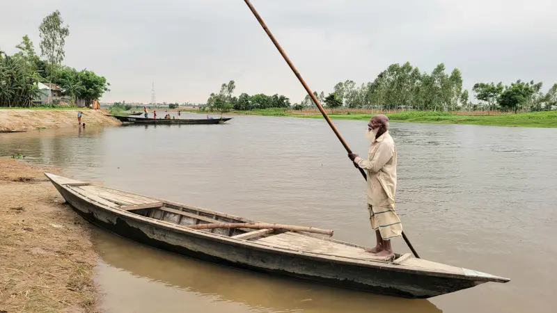 কি কমু বাহে! বর্ষা মৌসুমে ধরলা-বারোমাসিয়া নদীতে পানি বেড়ে যাওয়ায় হামার দুঃখের শ্যাষ নেই। আজ থেকে ১৫/২০ দিন থেকে হামারগুলার কষ্টে দিন শুরু হয়েছে। নদীতে যতই পানি বাড়ছে ততই হামারগুলার দুর্ভোগ বেড়েই চলবে। হামার গুলার দুঃখ আর কায় দেখে বাহে! হামারগুলার বাড়ির চারিদিকে নদী। দক্ষিণ-পশ্চিমে ধরলা ও উত্তর এবং পূর্বদিকে বারোমাসিয়া। সারাক্ষণ চরেই থাকতে হয়। ঘরে বাজার স্বদাই নেই। তাই আজ ডিঙি নৌকায় করে বারোমাসি নদী পাড়ি দিয়ে বাজারে গেইছি বাহে! এখন আবার নৌকায় যেতে হবে। থাকি একেবারে দীপচরে। বর্ষাকালে আমাদের অনেক কষ্ট সহ্য করতে হয় বাহে। বিশেষ করে ছোট ছোট বাচ্চাদের নিয়ে অনেক চিন্তায় থাকতে হয়। এভাবেই বছরের ৬ মাস পানির সাথে যুদ্ধ করে দিন পাড় করছি। কেউ যদি একান বাঁশের সাকোর নির্মাণ করে দিতো তাহলে হামার গুলার বড় উপকার হতো বাহে!