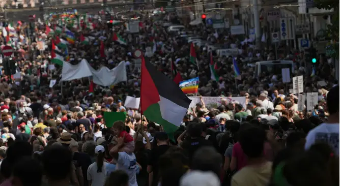 সরকারবিরোধী রাজনৈতিক দলগুলোর নেতৃত্বে আয়োজিত এই কর্মসূচিতে প্রধানমন্ত্রী জর্জিয়া মেলোনি ও ইসরায়েলি প্রধানমন্ত্রী বেঞ্জামিন নেতানিয়াহুর সরকারকে কঠোরভাবে সমালোচনা করা হয়।