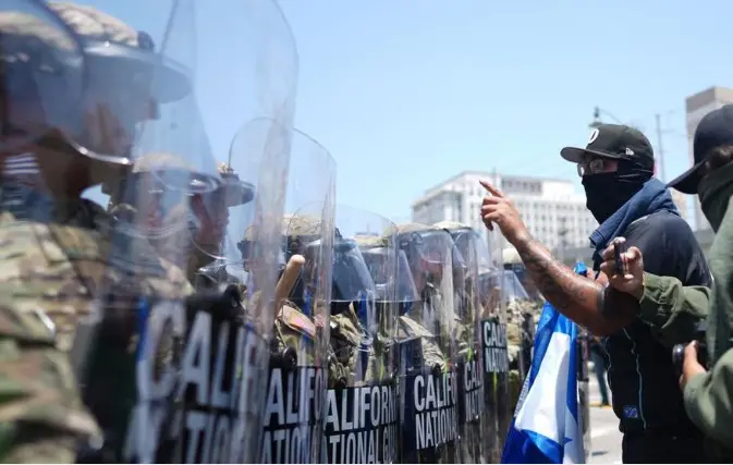 অবস্থা বেগতিক দেখে পরের দিন পুলিশ ও আইসিই সদস্যদের সহায়তার জন্য মার্কিন প্রতিরক্ষা মন্ত্রণালয়ের অধীন আধা সামরিক বাহিনী হাজার ন্যাশনাল গার্ডের ২ হাজার সদস্যকে মোতায়েনের নির্দেশ দেন ট্রাম্প। কিন্তু তাতে পরিস্থিতির উন্নতি ঘটার পরিবর্তে সংঘাত আরও বাড়তে থাকে।