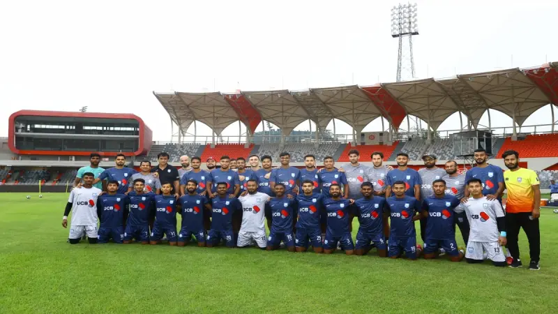 মিতুল মারমা (গোলরক্ষক), তপু বর্মণ, তারিক কাজী, সাদ উদ্দিন, শাকিল আহাদ, হামজা চৌধুরী, শমিত সোম, জামাল ভূঁইয়া/সোহেল রানা, ফাহমিদুল ইসলাম, শাহ কাজেম/ফয়সাল আহমেদ, রাকিব হোসেন।