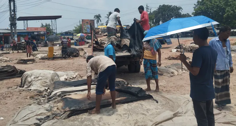 মঙ্গলবার (১০ জুন) কোরবানি ঈদ পরবর্তী প্রথম হাটে এই চিত্র উঠে এসেছে। এদিন ছিল কোরবানি ঈদ পরবর্তী প্রথম হাট। তবে বড়হাট শনিবার হওয়ায় এদিন ব্যবসায়ীরা মূলত বাজার যাচাইয়ে ব্যস্ত ছিলেন। ফলে গরু ছাগলের চামড়ার আমদানি ছিল তুলনামূলক বেশ কম।