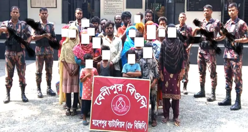 বিজ্ঞপ্তিতে জানানো হয়েছে, বুধবার দুপুর ২ টার সময় ৩২-বিএসএফ ব্যাটালিয়ন মহেশপুর ব্যাটালিয়নকে অবগত করেন যে, ভারতে অবৈধভাবে বসবাসরত ২৬ জন বাংলাদেশীকে হরিয়ানা পুলিশ আটক করে। এর পর পুলিশ ওই ২৬ জনকে বিএসএফের নিকট হস্তান্তর করে। বিএসএফ উক্ত ২৬ জন বাংলাদেশিকে ফেরত নেয়ার জন্য বিজিবিকে অনুরোধ করেন এবং ২৬ জন ব্যক্তির নাম, ঠিকানা ও মোবাইল নম্বর সম্বলিত বিস্তারিত বিজিবিকে প্রেরণ করে।