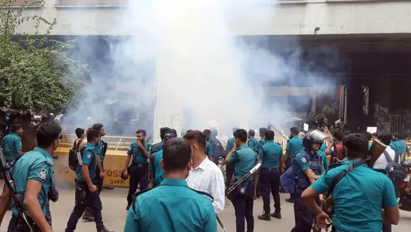 দেখা গেছে, মিছিলকারীরা ব্যারিকেড অতিক্রম করে সচিবালয়ের ফটকের কাছাকাছি চলে গেলে পুলিশ তাদের থামার অনুরোধ করে। আন্দোলনকারীরা সেই অনুরোধ না মানলে পুলিশ প্রথমে পাঁচটি ও পরে আরও দুটি সাউন্ড গ্রেনেড ছোড়ে এবং লাঠিচার্জ করে। এরপর বিক্ষোভকারীরা প্রেসক্লাব মোড়ে ফিরে অবস্থান নেন।