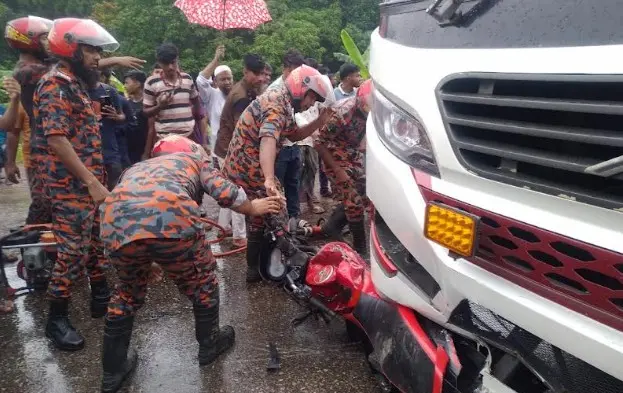 তবে বাসটির চালক ও হেলপার পালিয়ে যেতে সক্ষম হয়েছে। প্রত্যক্ষদর্শী ও পুলিশ সূত্রে জানা গেছে, রোববার (১৫ জুন) সকাল ৮টার দিকে বরিশাল-ঢাকা মহাসড়কের গৌরনদী উপজেলার ভূরঘাটা বাসস্ট্যান্ডের দক্ষিণপাশে এ দুর্ঘটনাটি ঘটে। গৌরনদী ফায়ার সার্ভিস স্টেশন সূত্রে জানা গেছে, ঢাকা থেকে ছেড়ে আসা হানিফ পরিবহনের ঢাকা মেট্রো ব ১২ ৩৬৭১ নম্বরের যাত্রীবাহী বাসটি ঢাকা মেট্রো ল ২১-০৯৩৮ নম্বরের মোটরসাইকেলটিকে পেছন দিক থেকে আরোহীসহ চাপা দেয়। এ সময় বাসের চাকায় পিষ্ট হয়ে মোটরসাইকেল আরোহী জাহিদ হাসান ঘটনাস্থলেই নিহত হন।