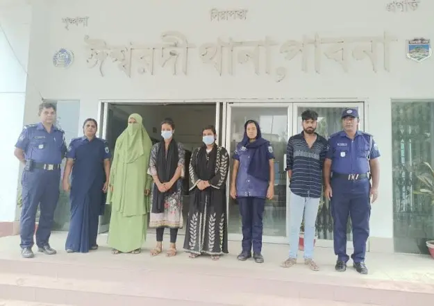 গ্রেপ্তারকৃতরা হলেন- উপজেলার লক্ষীকুন্ডা ইউনিয়নের কৈকুন্ডা গ্রামের মৃত আজাহার সরদারের ছেলে মোঃ সুমন সরদার, কুষ্টিয়ার দৌলতপুর উপজেলার আদাবাড়িয়া গ্রামের মোঃ আব্দুল খালেকের মেয়ে মোছাঃ সুখি খাতুন, নাটোরের লালপুর উপজেলার ইসলামপুর গ্রামের মোঃ শাহু বিশ্বাসের মেয়ে মোছাঃ তনিমা আক্তার তমা, একই গ্রামের আব্দুর রশিদের মেয়ে মোছাঃ আখি খাতুন।