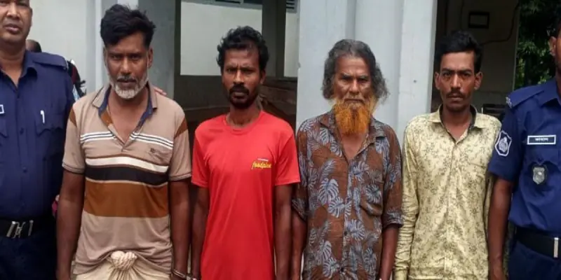 আটককৃতরা হলো- উজিরপুর থানার হারতা গ্রামের জয়নাল হাওলাদারের ছেলে মো. সুজন হাওলাদার (৩৬), চট্টগ্রাম জেলার আকবর শাহ থানার লতিফপুর গ্রামের মৃত আবুল হাসেমের ছেলে মো. আব্দুল কাদের (৪০), আগৈলঝাড়া থানার উত্তর বড় মাগরা গ্রামের মৃত মকবুল হোসেন বখতিয়ারের ছেলে মো. মোসলেম বখতিয়ার (৫৫) ও জাহাঙ্গীর আলম (৩০)। এঘটনায় বিজয় কবিরাজের ছেলে সাগর কবিরাজ বাদী হয়ে উল্লেখিত চারজনকে আসামী করে মামলা দায়ের করলে তাদের জেল হাজতে প্রেরণ করা হয়।