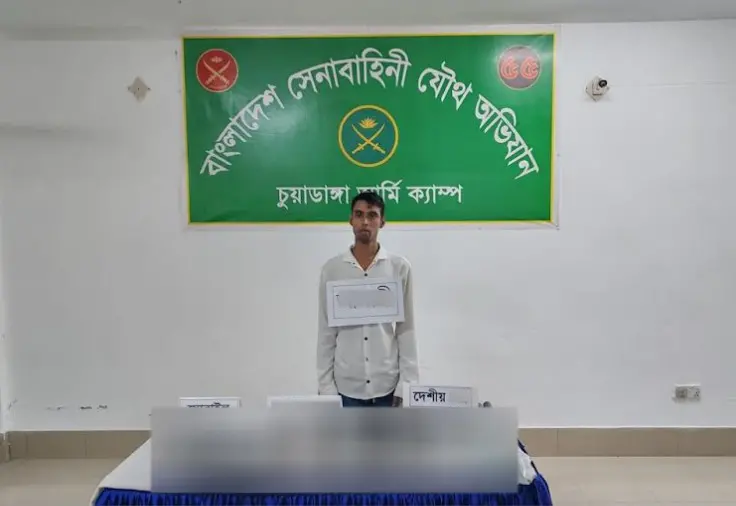 চুয়াডাঙ্গায় আগ্নেয়াস্ত্র ও দেশীয় অস্ত্রসহ নাজমুল আরেফিন কিরণকে (৩৪) গ্রেপ্তার করেছে সেনাবাহিনী।